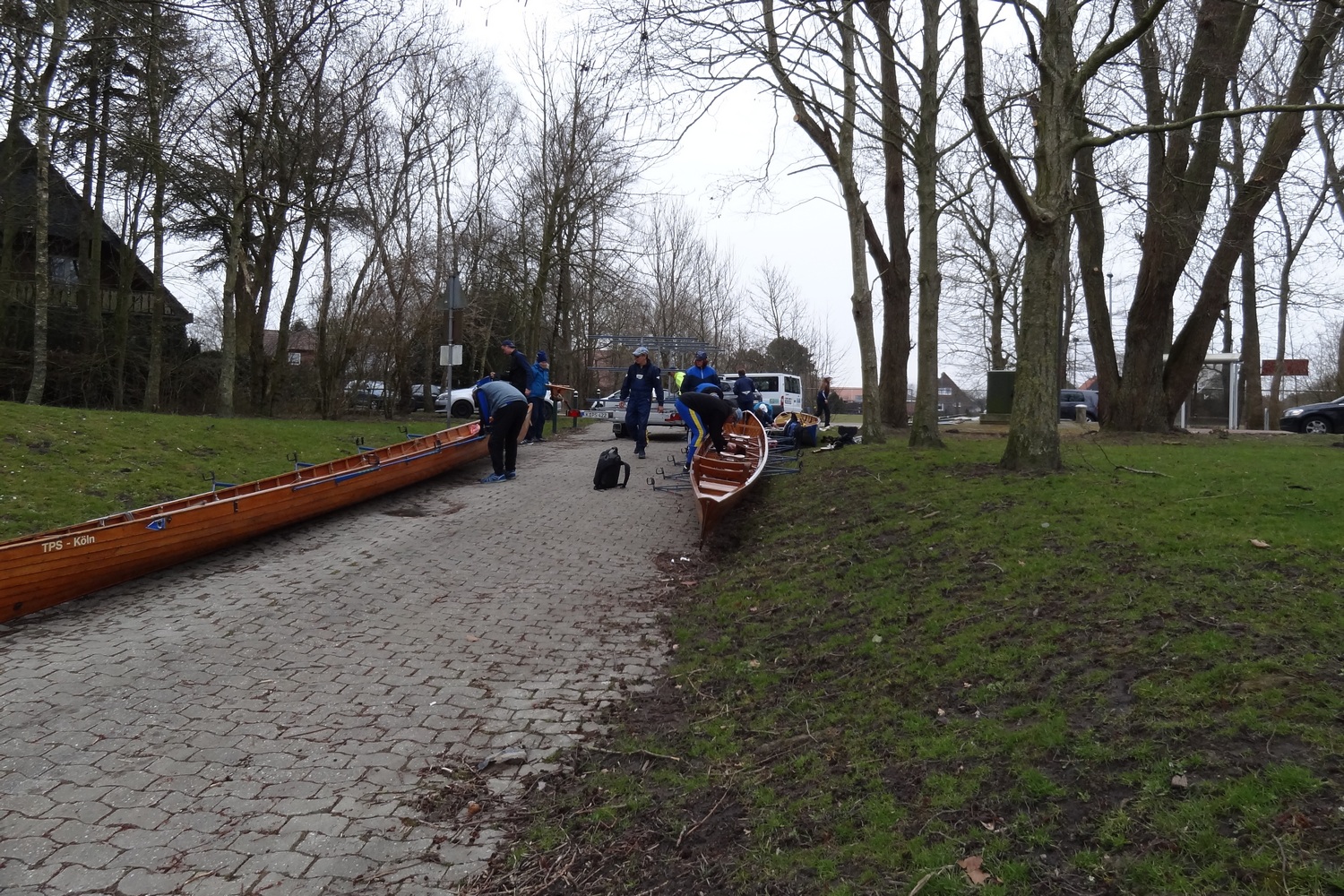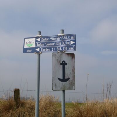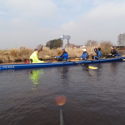 Die eine Himmelsrichtung, die uns von Emden aus rudertechnisch noch fehlt ist der Westen. Ostermontag war deshalb eine Tour westlich von Emden geplant, die in einer Schleife zurück nach Hinte führt. Über das Larrelter Tief und das Knockster Tief wurde bei sonnigem aber kaltem Wetter gerudert. Die Slipstelle in Hinte wurde schon am Vortag ausgekundschaftet und als passend erklärt. Hier wurden die Boote verladen und es ging zurück nach Köln.